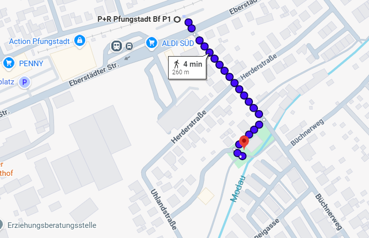 Am Pfungstädter Bahnhof gibt es einen Park-&-Ride-Parkplatz, sodass du auch mit dem Auto anreisen kannst. Von dort aus sind es nur etwa vier Minuten zu Fuß bis zum Büchnerpark – ein kurzer und entspannter Weg direkt ins Festivalgeschehen.